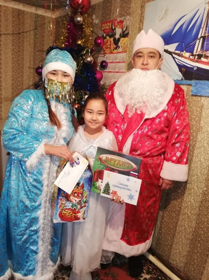 Двое детей по разнарядке на президентскую елку и трое детей на елку акима района. Также 25 подарков для детей из многодетных и малообеспеченных семей от акимата Байконурского района. 4 подарка от председателя ПОП совета.