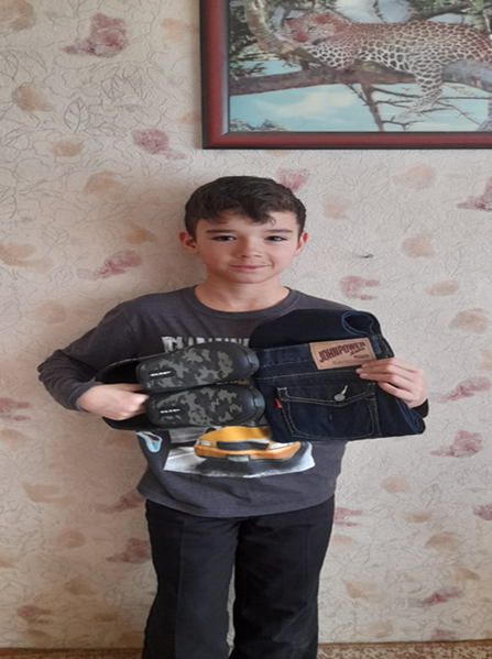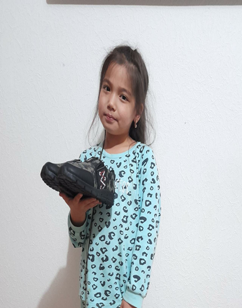 подарили подарки (спортивная обувь, джинсы) от благотворительного фонда «Акниет» под руководством Баян Мусахметовны.